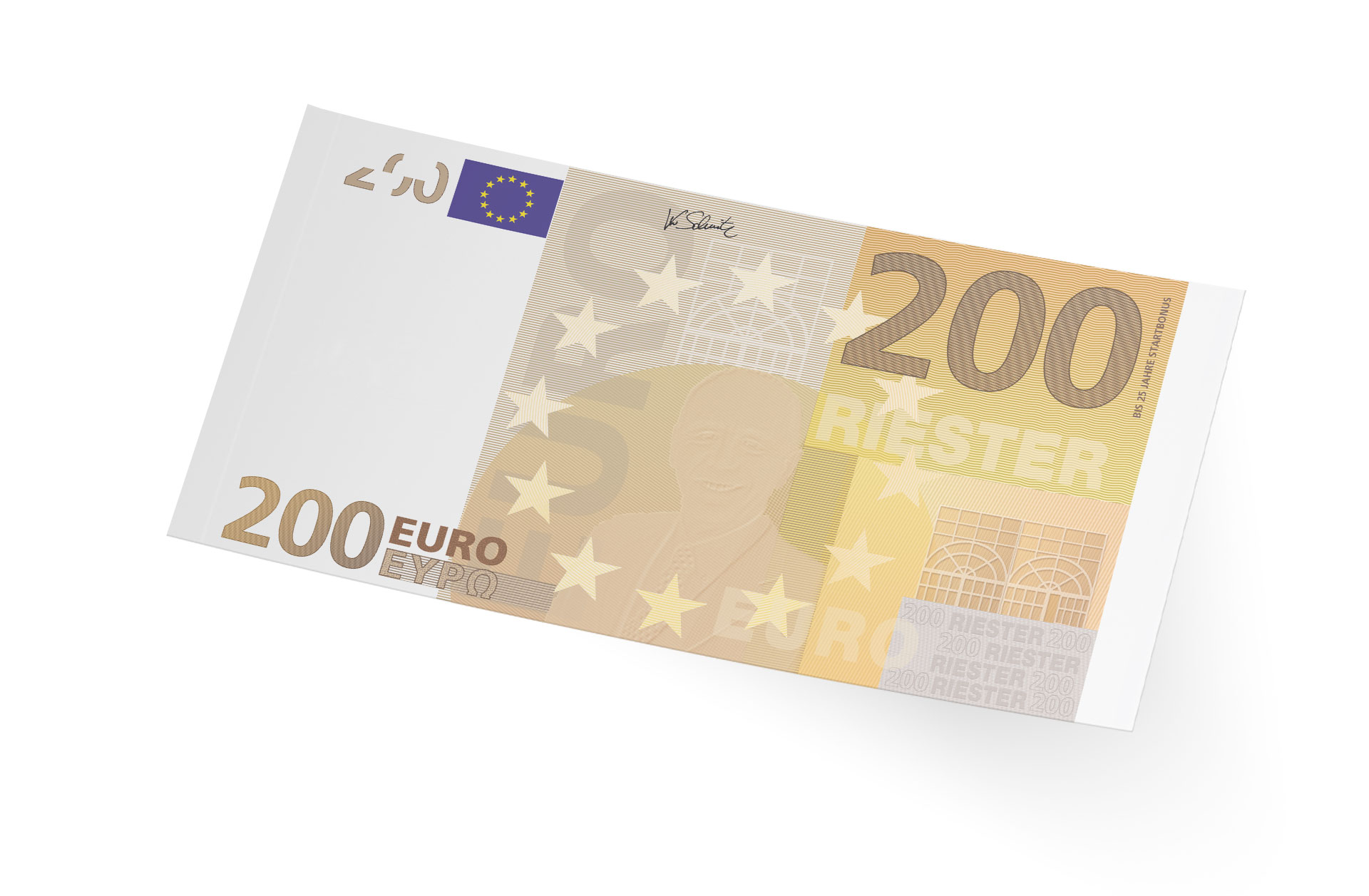 Sorgen Sie für Gesprächsstoff und setzen Sie auf eine außergewöhnliche Werbemöglichkeit: Die Riesterscheine sind mehr als nur ein Gag – sie sind ein Statement! Ob als kreatives Give-away, originelle Einladung oder als Eye-Catcher bei Ihren Events, diese Schein-Formate wecken Aufmerksamkeit und hinterlassen einen bleibenden Eindruck.